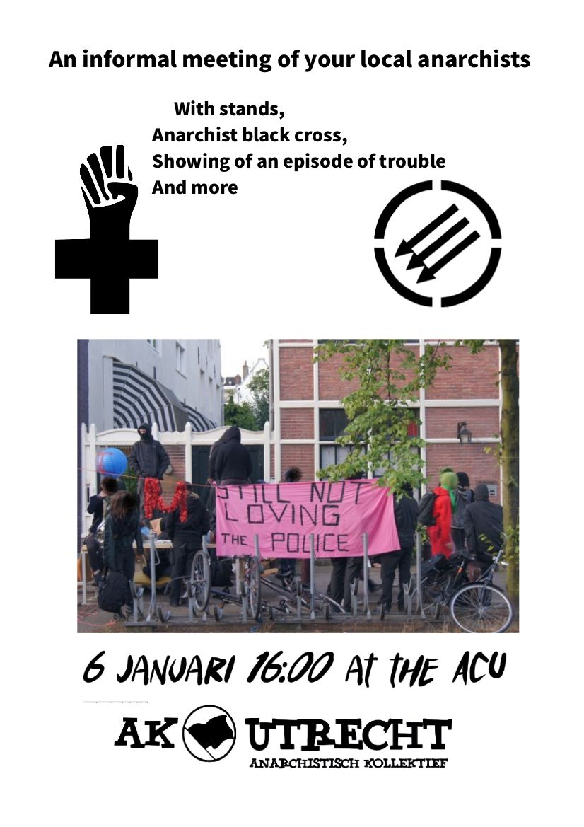 Event by Anarchistisch Kollektief Utrecht. 6th of January, 16:00 @ the ACU (voorstraat 71, Utrecht) https://ak-utrecht.nl/blog/6-januari On the 6 of…