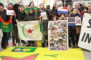 Vorige week woensdag, op 31 januari, kregen we via de gebruikelijke kanalen een bericht over een demonstratie van Koerden om 18:00 op Utrecht Centraal. Ze wilden gaan demonstreren tegen de inval in Afrin door de Turkse staat. Vier dagen eerder was er ook al een demonstratie geweest in Amsterdam. Enkele activisten van Antifa Utrecht zijn naar de demonstratie gegaan. We stonden in solidariteit tussen de Koerden met onder andere een zwart rode vlag en deelden stickers uit waarop stond: “make fascists afraid again”. Er werden meerdere goede gesprekken gevoerd met de mededemonstranten, die het konden waarderen dat we er waren. De groep bestond uit mensen van verschillende generaties die leuzen riepen als: “Erdoğan, moordenaar!” en “Afrin: vrij, vrij, vrij!” Koerdische vlaggen werden uitgedeeld en de circa 100 demonstranten waren bijzonder strijdbaar.