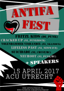 ANTIFA FEST 15-04-2017 Poster en Programma 8 April 2017 antifautrecht UPDATE: SUICIDADE WILL BE REPLACED BY RC SULLIVAN UPDATE: SUICIDADE HEEFT GECANCELD EN WORDT VERVANGEN DOOR RC SULLIVAN Bewaren Bewaren