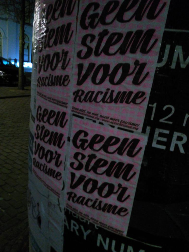 Gisteren zijn er meerdere “Geen Stem Voor Racisme” posters van AFA Nederland geplakt in Utrecht.