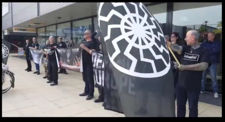 Het was pas in 1991 toen een roman genaamd “Die Schwarze Sonne von Tashi Lhunpo” (“De Zwarte Zon van Tashi Lhunpo”) geschreven doorRussel McCloud, de occulte betekenis linkte aan het nationaalsocialisme dat het symbool echt populair werd onder de nazi’s. Tegenwoordig zien we dat groepen zoals RVF Landstorm het gebruiken bij acties (zie foto) en wordt het symbool ook door de Nederlandse Volksunie gebruikt.
