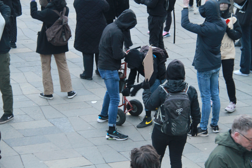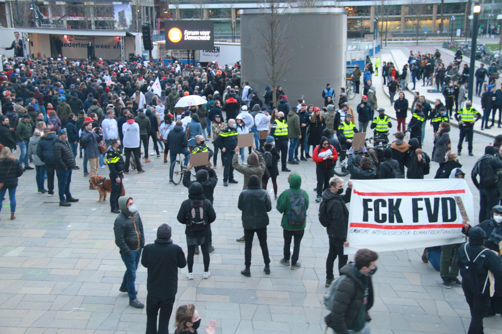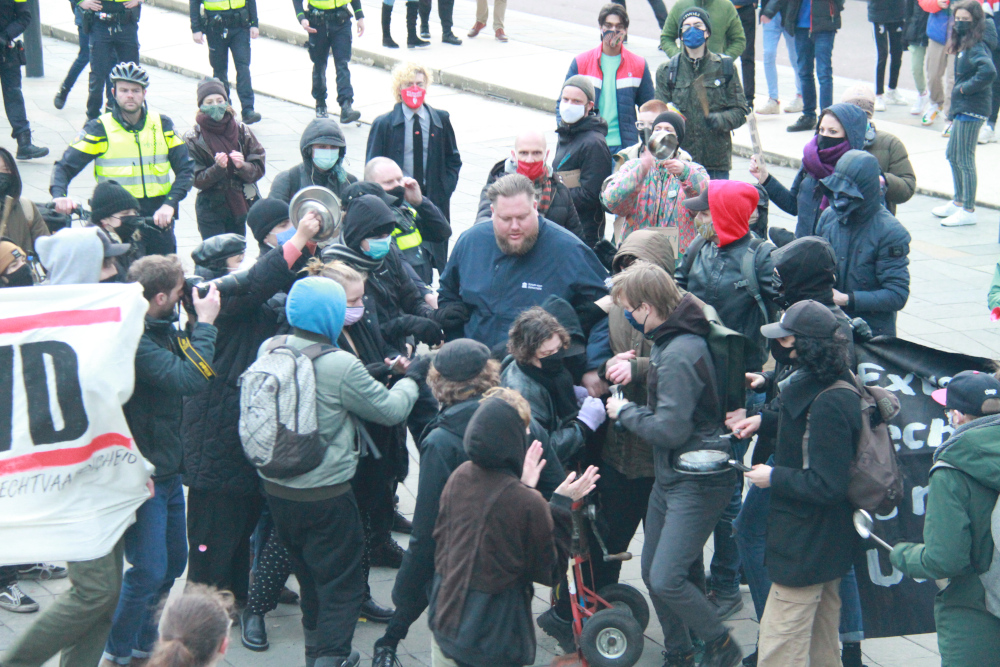 Een kleine 200 FvD aanhangers waren gekomen om naar de hatelijke speeches van Baudet te luisteren. Deze raakten behoorlijk geirriteerd doordat de antifascistische-actievoerders met potten, pannen, muziekinstrumenten en een luchtalarm een oorverdovend lawaai te maken.
