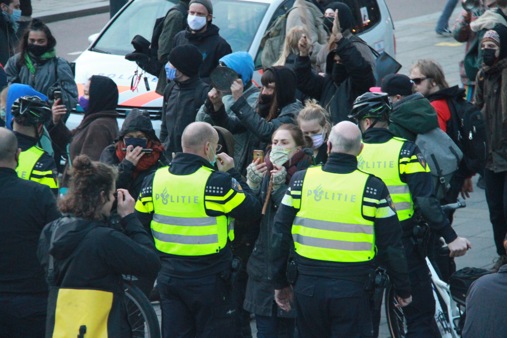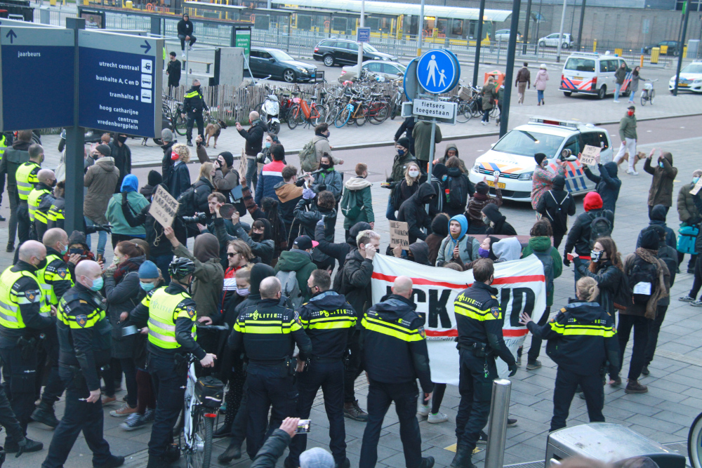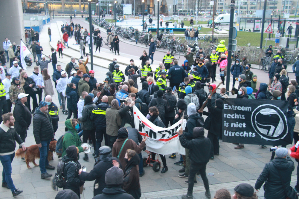 De groep liep vanuit de binnenstad richting het centraal station. Ter hoogte van Hoog Catharijnestonden ze nog enkele groepsfoto´s te maken.  Een activist zag dit en liep naar ze toe om hen te filmen. Terwijl de activist dit deed werd die aangevallen door de ongesminkte persoon in de groep die de telefoon probeerde af te pakken. We hebben de activist toen direct ontzet en de racisten duidelijk gemaakt dat ze niet welkom waren.