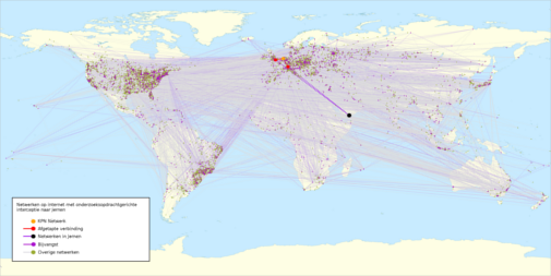 11 februari 2018 -Artikel 48 van de nieuwe WIV geeft de AIVD en de MIVD de bevoegdheid tot “onderzoeksopdrachtgericht” aftappen van internetverkeer. Wat we precies moeten verstaan onder “onderzoeksopdrachtgericht” wordt verduidelijkt in de Memorie van Toelichting, waarin een aantal voorbeelden worden genoemd. Een van deze voorbeelden is aftappen met als doel ‘ongekende contacten bloot te leggen tussen telefoontoestellen in een failed state en Nederland’ (p. 126). In deze casus analyse gaan we er van uit dat de AIVD en MIVD Jemen zien als een “failed state”. We beschrijven hoe dataverkeer tussen telefoons in Nederland en Jemen getapt kan worden en wat de implicaties hiervan zijn.