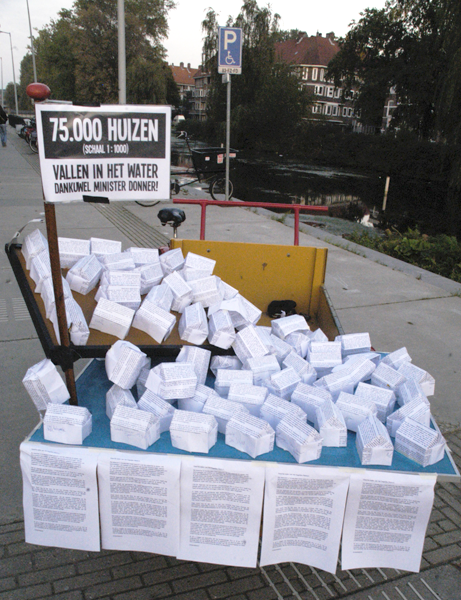 Tijdens de deelraadsvergadering van stadsdeel Oost hebben de bewoners van Linnaeusstraat 70 I, II, III en 72-II een maquette aangeboden aan wethouder Reuten (portefeuille Wonen, Grote projecten, Ruimtelijke ontwikkeling en Stedelijke vernieuwing). Op de maquette zijn 75 brieven te zien die, gevouwen in de vorm van huisjes, als zinkende schepen in het water terechtkomen. Het staat symbool voor de 75.000 sociale huurhuizen die Amsterdam zal verliezen als gevolg van een huurmaatregel die minister Donner invoert per 1 oktober.
