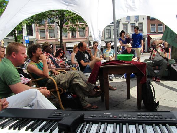Poëziemiddag II op de Ganzenmarkt. Verschillende dichters zullen eigen en favoriete gedichten voordragen. De middag zal muzikaal worden omlijst door pianist/improvisator Freek Zwanenberg.