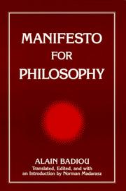 Manifesto for Philosophy Translated, edited and with an Introduction by Norman Madarasz