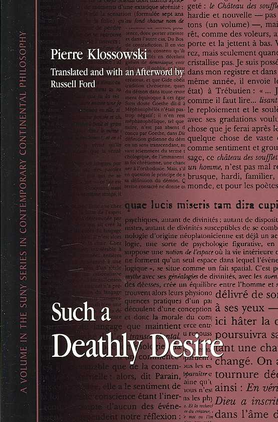 "Pierre Klossowski was one of the most influential (albeit idiosyncratic) literary figures in France during the postwar years, yet his work remains strangely unknown in the English-speaking world. Such a Deathly Desire was one of the essential books of Klossowski's oeuvre, and it includes seminal articles on Gide, Bataille, and Blanchot, as well as his now-classic essay 'Nietzsche, Polytheism, and Parody.' The appearance of the book in English has long been anticipated, and we owe an immense debt to Russell Ford for providing us with an accessible and accurate translation." - Daniel W. Smith, Purdue University