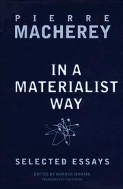 In a Materialist Way Selected Essays. Edited by Warren Montag. Translated by Ted Stolze