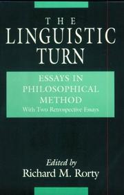 The Linguistic Turn Essays in Philosophical Method. With two retrospective essays