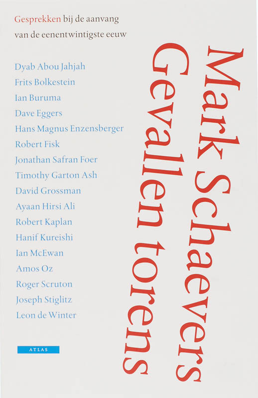 Journalist Mark Schaevers ging het hun vragen. In Gevallen torens brengt hij verslag uit van zijn ontmoetingen met Jonathan Safran Foer, Ian McEwan, Frits Bolkestein, Timothy Garton Ash, Ian Buruma, Amos Oz, Robert Fisk, Robert Kaplan, Hanif Kureishi, Roger Scruton, Hans Magnus Enzensberger, Leon de Winter, Ayaan Hirsi Ali, Joseph Stiglitz, David Grossman, Dyab Abou Jahjah en Dave Eggers.