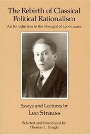 The Rebirth of Classical Political Rationalism An Introduction to the Thought of Leo Strauss. Essays and Lectures by Leo Strauss selected and intro