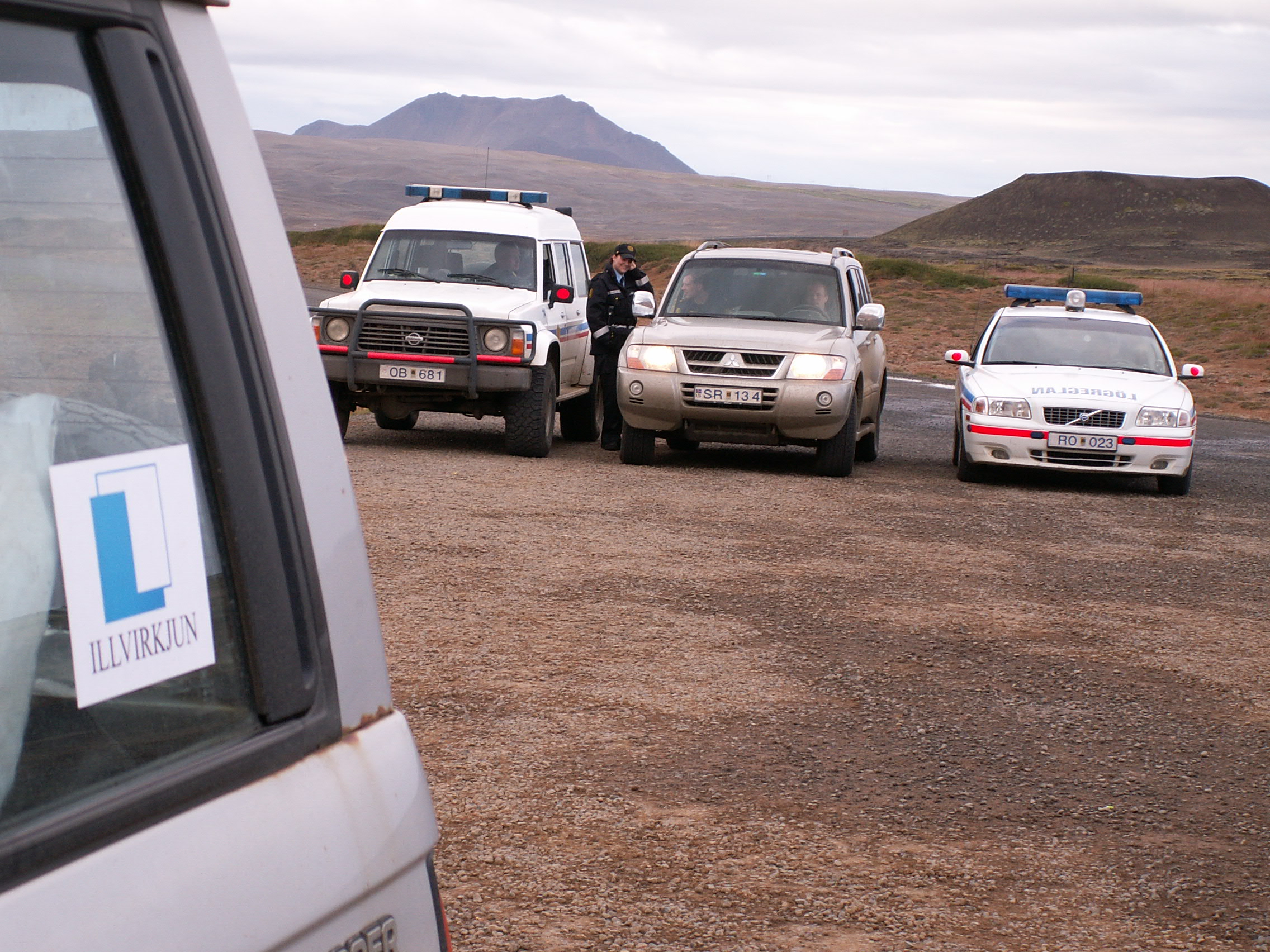 Marked and unmarked police vehicles followed people hitching along the south route for days and vehicles driving the north route were followed in to the middle of nowhere overnight. The national news has shown film of an undercover (not anymore!) car tailing people in Reykjavik round and round a roundabout!