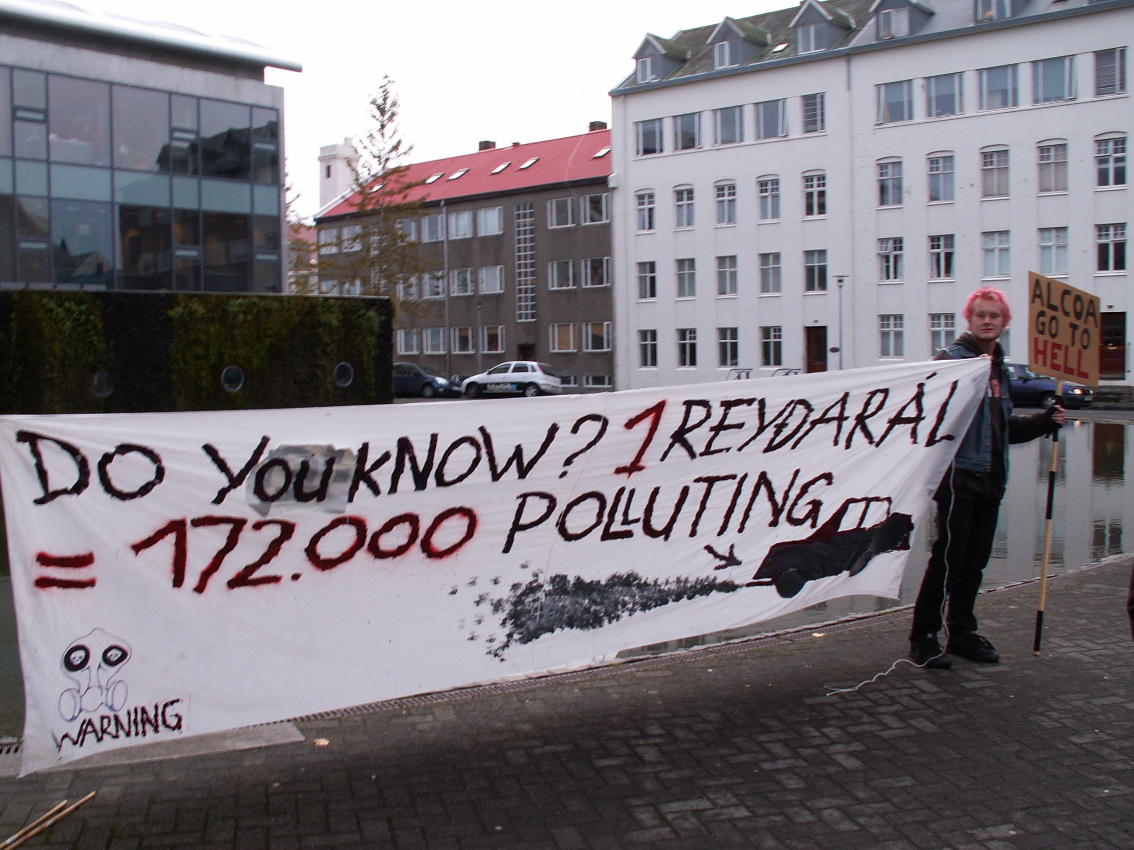 Same day in the late afternoon the representatives of the most polluting industry in the world were treated with champagne and canapés at the Reykjavík Municipality. At the same time an International Transport week was being celebrated in Reykjavík; its stated purpose was “to raise awareness among the public on the necessity of reducing pollution caused by traffic”. Greenhouse gas emissions from the ALCOA smelter in Reyðarfjörður will be equal to that of 172.000 cars; the entire car-fleet of Iceland!