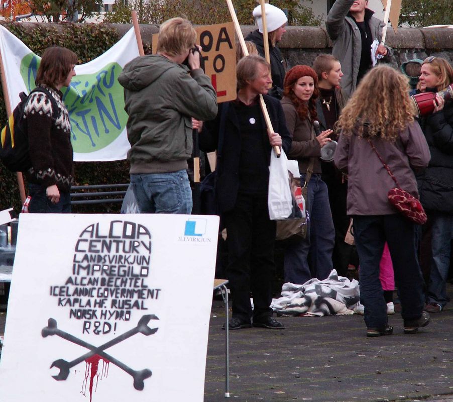 At this conference, which is partly funded by Icelandic tax payers’ money, the Technological Institute of Iceland, City of Reykjavík, the Ministry of Industry, Icelandair and the National Power Company, Landsvirkjun are among the sponsors and participants, Iceland is yet again being offered up for sale as a cheap country to smelt aluminium, while undesirable points of view are unwelcome.