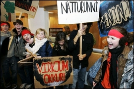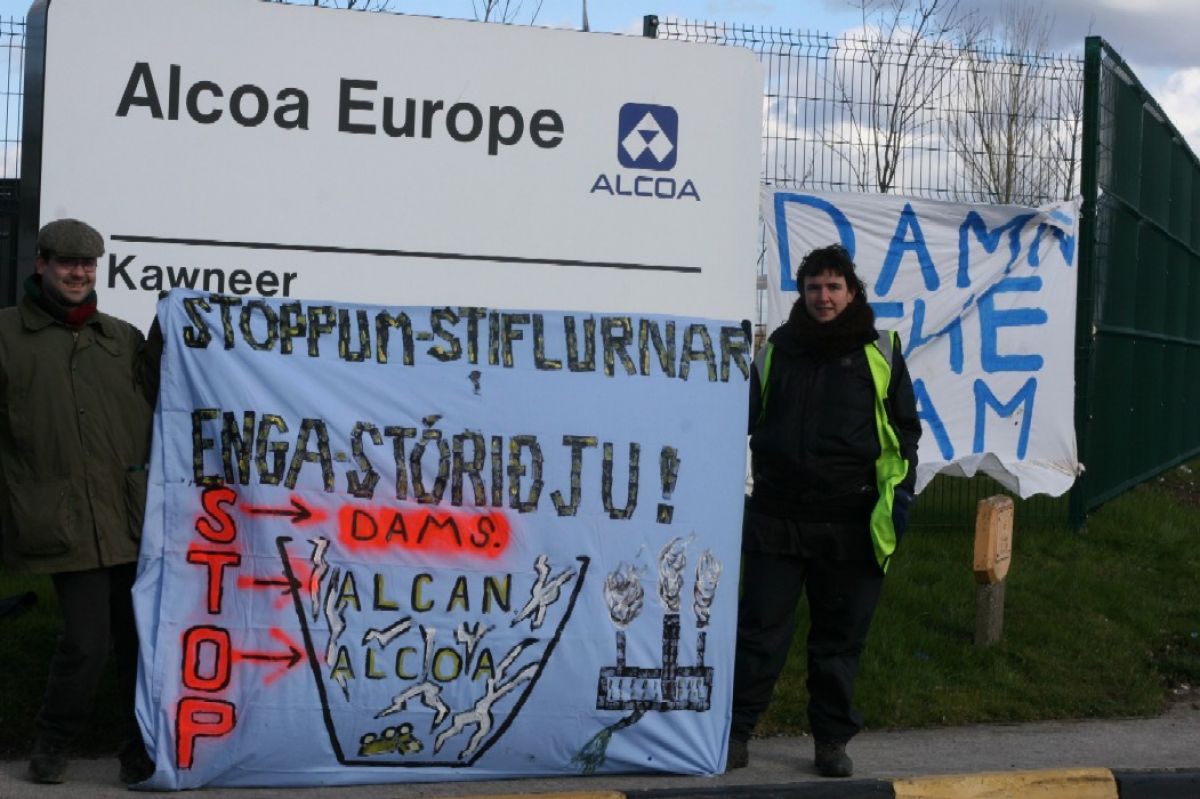 Alcoa are being targeted because of their involvement in the Karahnjukar dam projects. The campaign is growing and intensifying as the Icelandic government and Alcoa’s plans for devastation of the Icelandic landscape expand. Tomorrow Alcoa will announce whether they intend to build another smelter in the North of Iceland, a decision we feel should be made by the people of Iceland rather than a foreign corporation.