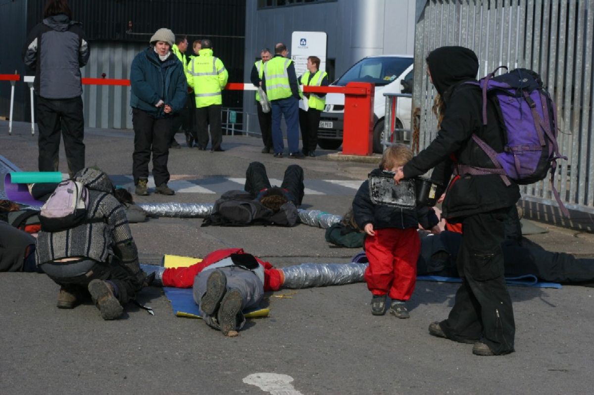 At the time of writing around thirty protesters are blockading the entrance to the Runcorn Alcoa factory near Manchester. Seven people have locked onto each other with armtubes and for nearly three hours all traffic to and from the factory has been blockaded.