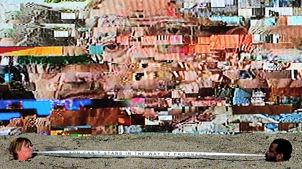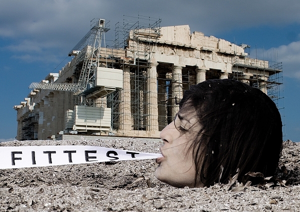 Kjarni sýningarinnar var samnefnd kvikmynd sem að hluta var tekin upp í Grikklandi og á Íslandi á síðasta ári, að öðrum hluta samansett úr myndefni frá ýmsum ljósmynda- og kvikmyndasöfnum. Í forgrunni myndarinnar eru tveir til þrír einstaklingar í senn, kviksettir í sandi svo höfuðin ein standa upp úr. Ófærir um sjálfstæða hreyfingu tyggja þeir á milli sín eða skiptast á að gleypa ofan í sig og gubba út úr sér hvítum silkiborðum sem á eru ritaðar ýmsar klisjur og kreddur vestræns samfélags: Read More