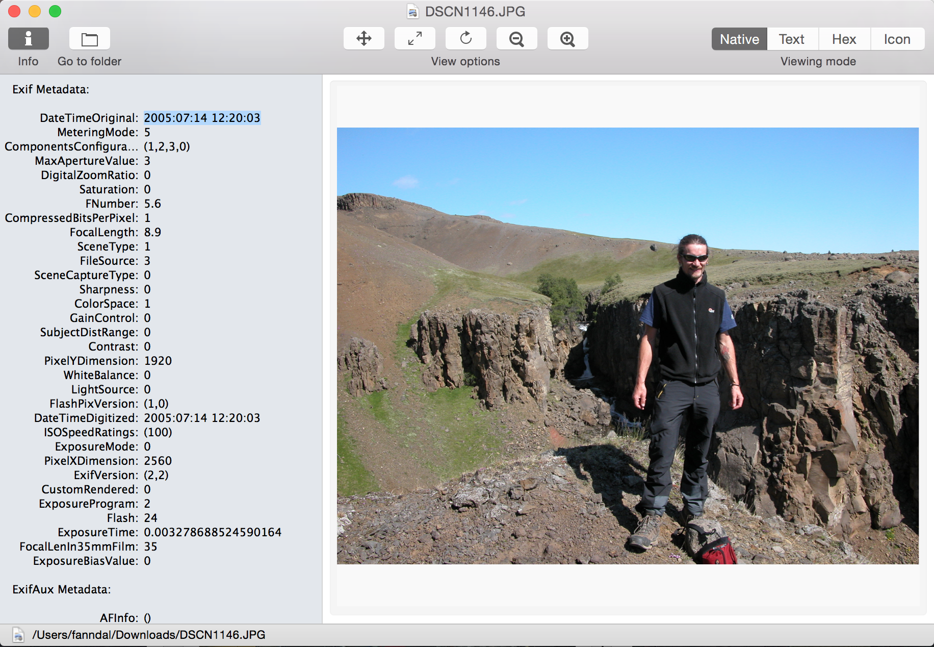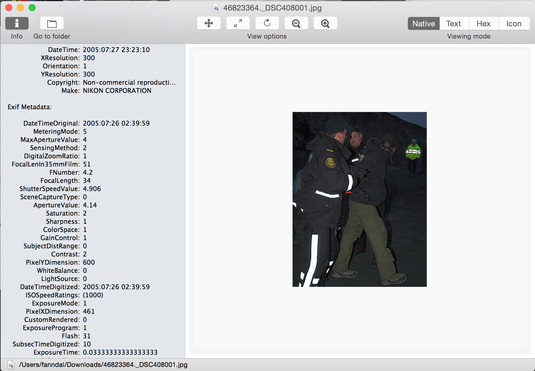 Þrátt fyrir loðin svör íslenskra lögregluyfirvalda er ljóst að lögreglan hafði afskipti af Kennedy hér á landi. Nokkur fjöldi mynda (smellið á myndirnar til að stækka þær) er til af Kennedy hér á landi. Sumar eru úr hans eigin fórum en hann deildi þeim með öðrum aðgerðarsinnum. Þar á meðal mynd sem tekin var 14. júlí árið 2005, skömmu eftir að hann kom til landsins. Um tveimur vikum síðar tók Kennedy þátt í aðgerðum við Kárahnjúka þar sem aðgerðarsinnar hlekkjuðu sig við vinnuvélar. Stafrænar myndavélar skrá svokallað ‘metadata’ á allar myndaskrár. Meðal þeirra upplýsinga sem finna má í ljósmyndaskrám eru upplýsingar um tegund myndavélar, ljósopsstillingu ásamt dagsetningu og tíma þegar mynd var tekin. Tvær ljósmyndir vekja sérstaka athygli séu þessar upplýsingar skoðaðar. Annars vegar mynd þar Kennedy sést hlaupa að stjórnklefa vinnutækis og svo mynd þar sem Mark Kennedy er ásamt tveimur lögreglumönnum. Tímastimpill myndanna sýnir að þær eru teknar með aðeins nokkurra mínútna millibili, þann 26. júlí 2005. Það er sami dagur og seinni aðgerðir Saving Iceland voru á Kárahnjúkum.